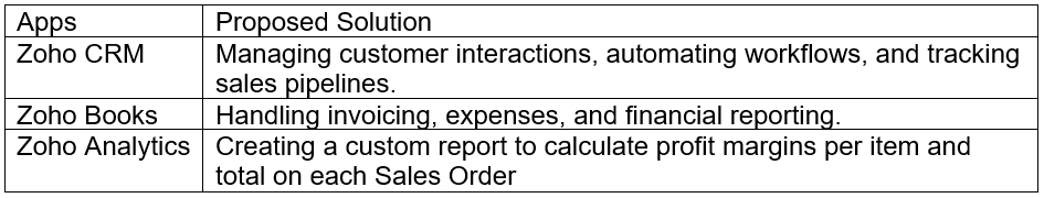 • Developed a custom report in Zoho Analytics to show item-wise and total profit margins on Sales Orders.